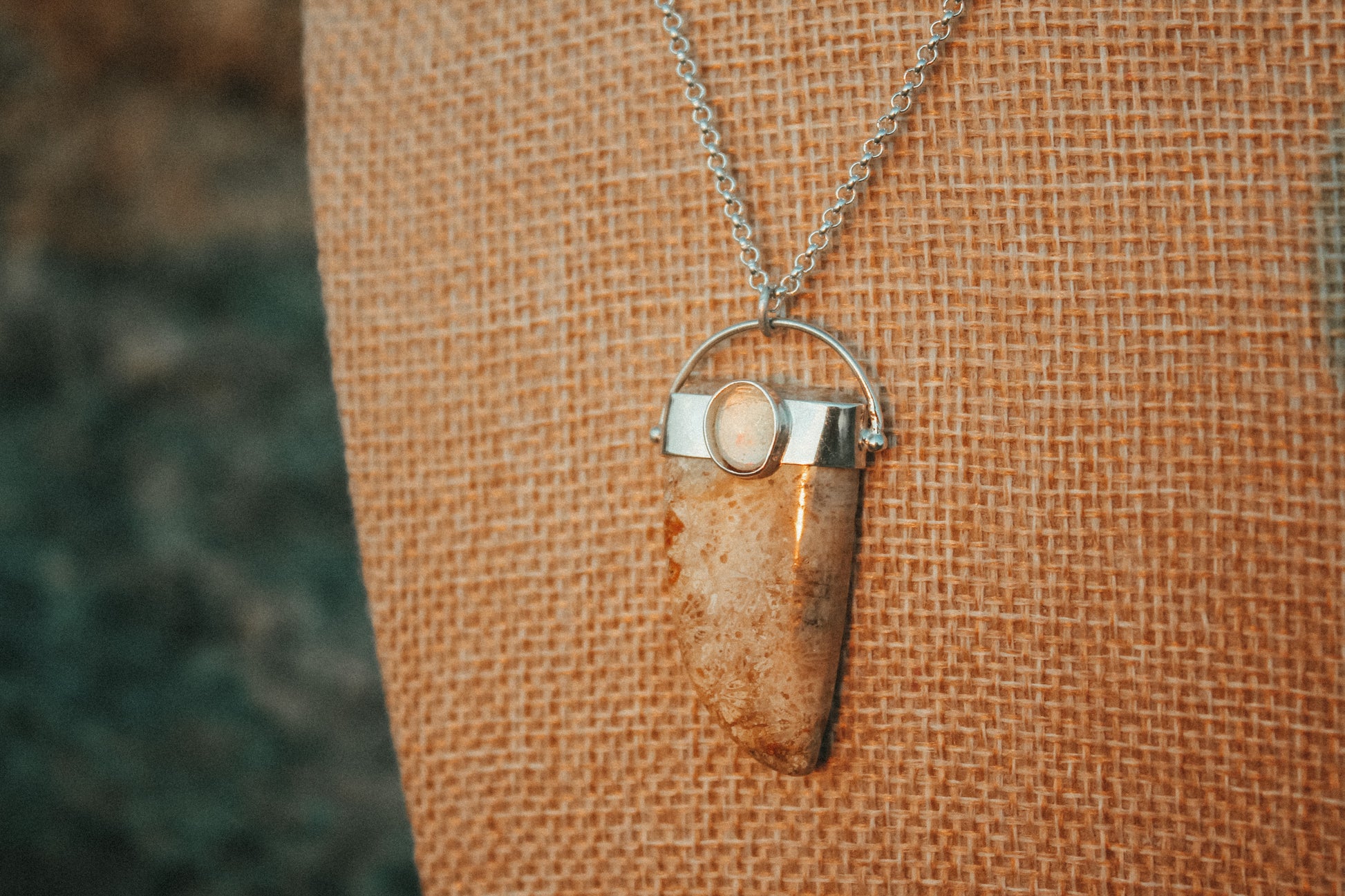 Colgante DIENTE de Coral fosilizado con Ópalo