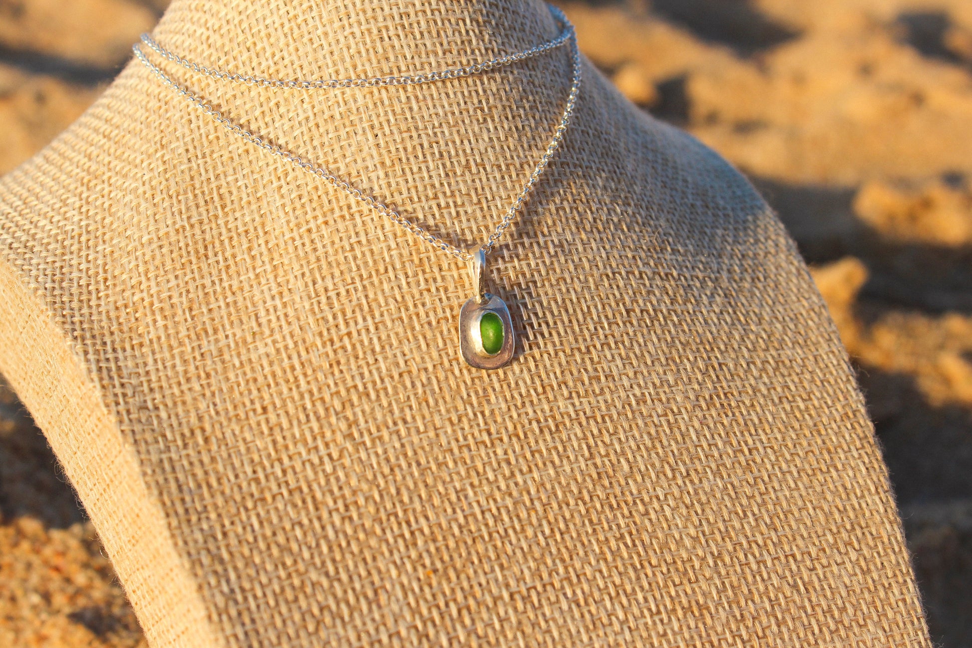 Medallita de plata 950 con pepita de Seaglass verde. Todo pequeño y minimalista, con el toque playero de esta colección.